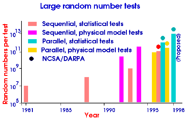 All the SPRNG generators, developed at NCSA, have been subjected to some of the largest unclassified random number tests ever performed. In particular, the 48 bit LCG and the modified LFG have been tested with up to 1012 random numbers in certain tests. Larger tests are planned.